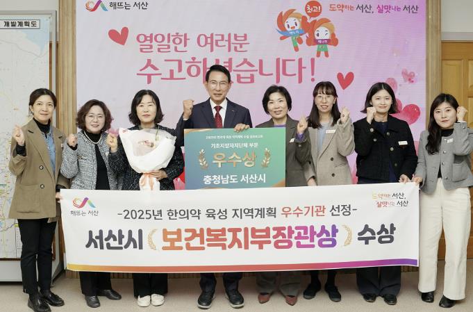 [뉴스노크=김인호 기자] 충남 서산시는 보건복지부가 실시한 ‘2025년 한의약 육성 지역계획 수립 성과보고회’에서 우수기관으로 선정돼 보건복지부 장관상을 받았다고 밝혔다.