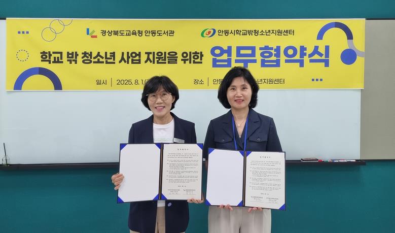 [뉴스노크=김인호 기자] 안동시학교밖청소년지원센터와 경상북도교육청 안동도서관은 지난 8월 1일, 꿈드림 교육실에서 학교 밖 청소년 지원을 위한 업무협약(MOU)을 체결했다.