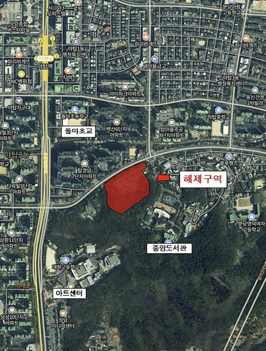 ▲ 23일자로 토지거래허가구역에서 해제된 야탑동 621번지 위성지도 |