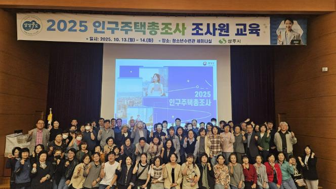 [뉴스노크=김인호 기자] 상주시는 지난 10월 13일부터 14일까지 청소년수련관 세미나실에서 2025 인구주택총조사의 성공적 추진을 위해 조사원 집합교육을 진행했다. 조사원 80명과 예비조사원 5명 등 총 85명이 참석한 이번 교육은 조사 지침 설명, 태블릿 PC 입력 실습, 개인정보보호 준수 의무, 돌발 상황 대응 교육 등을 중심으로 구성됐다.