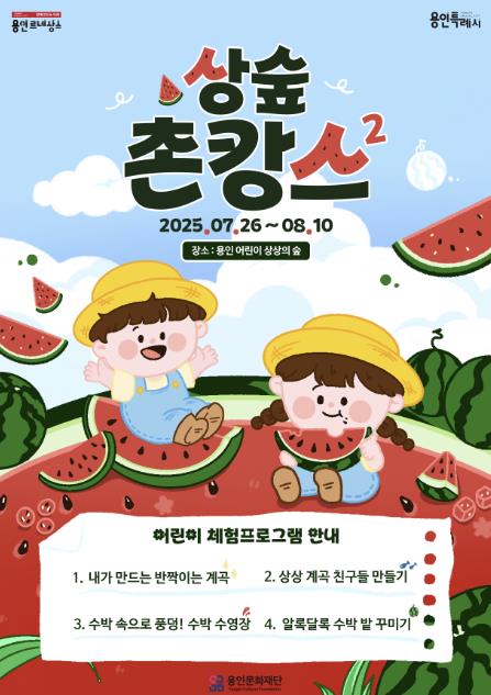 [뉴스노크=김인호 기자] 용인문화재단은 오는 7월 26일부터 8월 10일까지 용인어린이상상의숲 예술놀이터에서 여름방학 특별행사 《상숲 촌캉스 시즌2》를 개최한다.
