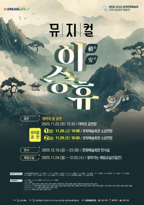 11월 28일 오후 7시와 29일 오후 4시에는 삼척문화예술회관 소공연장에서 뮤지컬 ‘동안 이승휴’가 무대에 오른다. 고려 후기 문신이자 삼척을 대표하는 인물인 이승휴 선생의 일대기를 드라마적 구성으로 표현한 창작 공연이다.