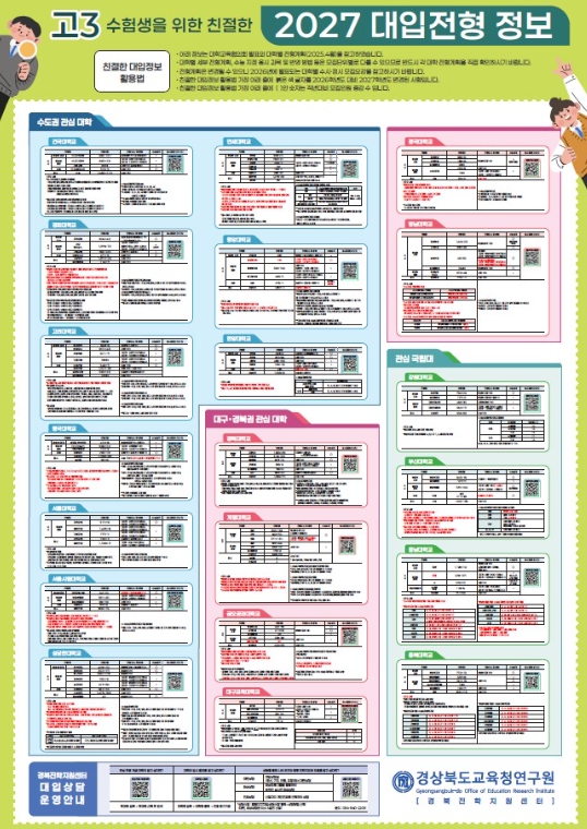 또한 ‘2027 대학 진학 정보’ 동영상은 경상북도교육청 공식 유튜브 채널 ‘맛쿨멋쿨TV’에 탑재해 학생과 학부모가 언제든지 시청할 수 있도록 했다.