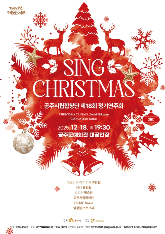 [뉴스노크=김인호 기자] 공주시는 오는 12월 18일 저녁 7시 30분 공주문예회관 대공연장에서 공주시립합창단 제18회 정기연주회 ‘Sing Christmas’을 개최한다.