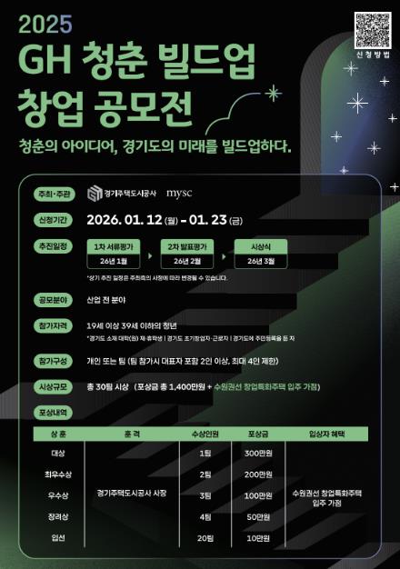 GH, 청년 창업 활성화 위한 '2025 GH 청춘 빌드업 창업 공모전' 실시