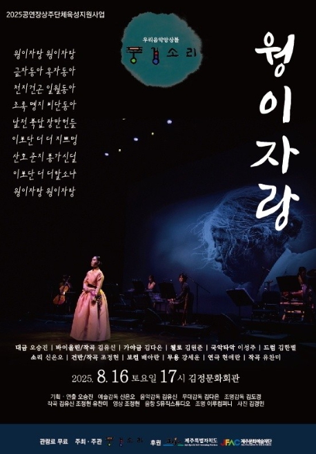 [뉴스노크=김인호 기자] 서귀포시는 김정문화회관 공연장 상주단체 육성지원사업의 일환으로 우리음악 앙상블 ‘풍경소리’의 '웡이자랑' 공연을 오는 8월 16일 오후 5시에 김정문화회관에서 개최한다고 밝혔다.