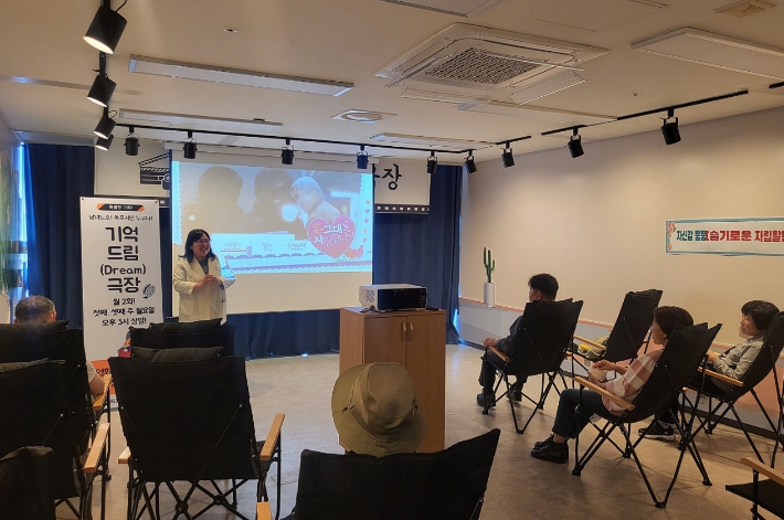 ‘기억드림극장’은 영화 관람을 매개로 치매 예방 체험과 상담을 함께 제공하는 프로그램으로, 매주 1회씩 총 38회에 걸쳐 진행된다. 프로그램은 치매안심센터 내 전용 공간에서 운영되며, 지역주민과 경로당 어르신, 재활보건사업 대상자 등이 참여할 수 있다.