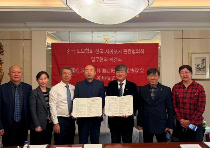 [뉴스노크=김인호 기자] (사)서귀포시관광협의회는 중국걷기협회와 3일, 북경 베이징 구루 접견실에서 양 기관이 주관하는 유채꽃 국제걷기대회와 북경 걷기대회를 성공적으로 추진하기 위해 업무협약을 체결했다고 밝혔다.