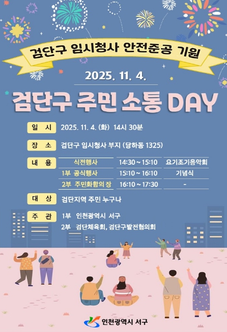 이번 행사는 검단지역 주민 누구나 자유롭게 참석 가능하며, 시민과 행정이 함께 소통하고 미래의 검단구를 함께 그려보는 의미있는 자리가 될 전망이다.