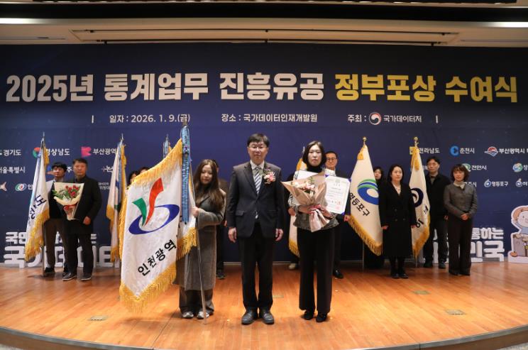 [뉴스노크=김인호 기자] 인천 서구는 지난 9일 통계업무 분야에서 우수한 성과를 인정받아 ‘2025년 통계업무 진흥유공(통계조사 부문)’ 국무총리 기관 표창을 수상했다고 밝혔다.