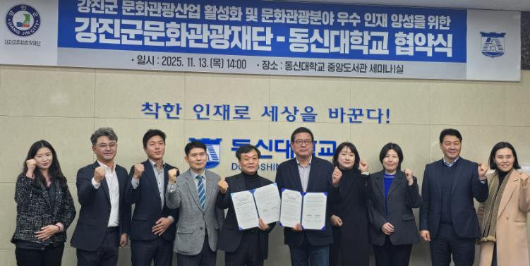 [뉴스노크=김인호 기자] 강진군문화관광재단이 최근 동신대와 문화관광산업의 미래 경쟁력 강화와 우수 인재 양성 상호협력에 관한 협약을 체결했다.