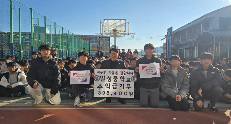 이번 성금은 밀성중학교 학생들이 학교 축제를 통해 마련한 수익금으로, 지역사회 나눔 실천을 위해 전달됐다.