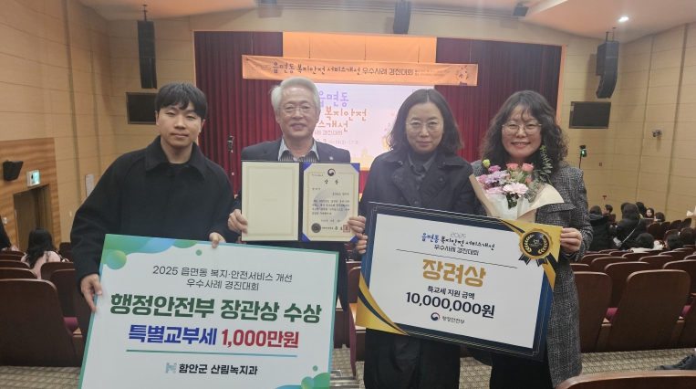 [뉴스노크=김인호 기자] 함안군은 지난 3일 행정안전부가 주관한 ‘2025년 읍면동 복지·안전서비스 우수사례 경진대회’에서 장려상을 수상했다고 밝혔다.