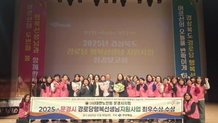 [뉴스노크=김인호 기자] (사)대한노인회 문경시지회(지회장 박경규)가 지난 18일 경북도청 동락관에서 열린 ‘2025년 경로당 행복선생님 사업 성과보고회’에서 최우수상을 수상했다.