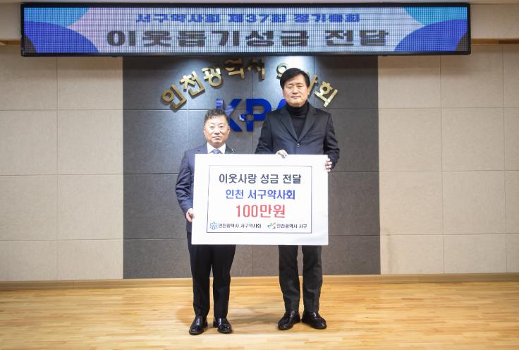 이에 강범석 서구청장은 “매년 서구 주민들을 위해 꾸준히 나눔을 실천하는 서구약사회에 진심으로 감사드리며, 앞으로도 주민들의 건강증진과 지역 보건 발전을 위해 서구약사회와 적극적으로 소통하겠다”라고 전했다.