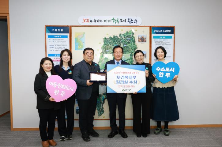 [뉴스노크=김인호 기자] 완주군이 지난 1일 보건복지부가 주관한 ‘2025년 아동보호체계 구축 우수 지자체 평가’에서 전국 군 단위 최초로 우수기관으로 선정돼 보건복지부 장관상을 수상했다.