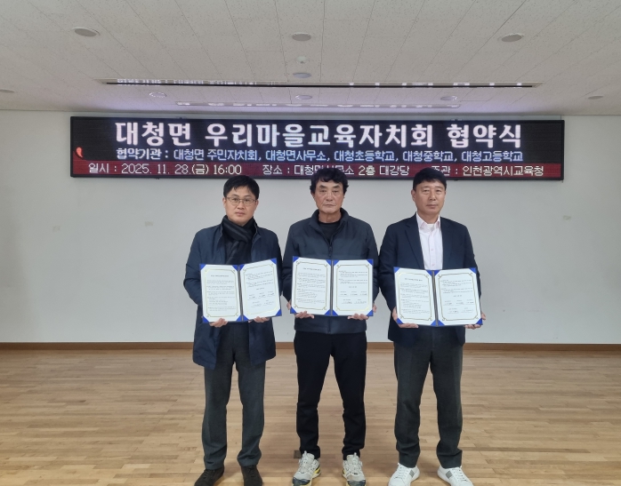 [뉴스노크=김인호 기자] 인천광역시교육청은 25일 간석1동, 28일 대청면에서 우리마을교육자치회 협약식을 열고 인천형 교육자치 모델의 35번째와 36번째 교육협의체 출범을 공식화했다.