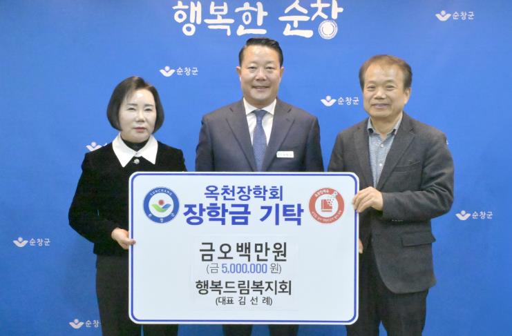 [뉴스노크=김인호 기자] 순창군이 1일 (사)행복드림복지회에서 순창군옥천장학회에 장학금 500만원을 기탁했다고 밝혔다.