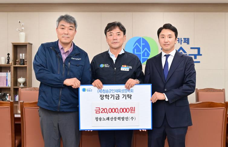 청송노래산풍력발전(주)은 2021년부터 매년 2천만 원씩, 5년간 총 1억 원의 장학금을 기탁하며 기업이윤의 사회 환원이라는 사회적 책임을 지속적으로 실천해 오고 있다.