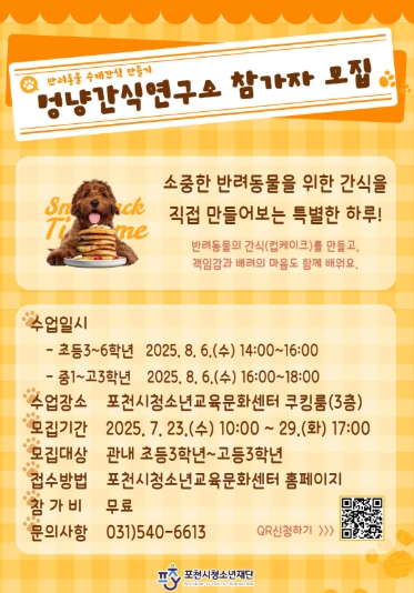 ▲ 포천시청소년교육문화센터, 「멍냥간식연구소」 참가자 모집 |