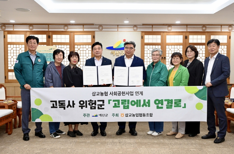 [뉴스노크=김인호 기자] 예산군은 삽교농협(김종래 조합장)과 저소득 고독사 고위험 가구를 위한 ‘고립에서 연결로 시범사업’ 업무협약을 체결했다고 1일 밝혔다.