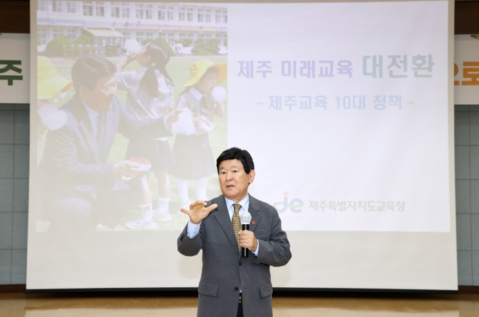 김광수 교육감은 특강에서 제주교육청만의 차별화된 대표 정책으로 ▲자치경찰 활용 학교안전경찰관 제도 ▲제주형 자율학교(글로벌역량학교) ▲자율학교 운영 유형 다양화 ▲교육발전특구 시범지역 운영 ▲늘봄학교 및 초등주말돌봄센터 '꿈낭' 운영 등을 소개했다.