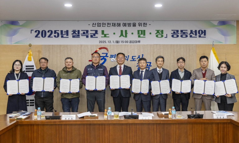 칠곡군 노사민정협의회는 노동자기업지역사회행정이 함께 안전한 작업환경 조성에 협력한다는 내용의 공동선언문을 채택했으며,