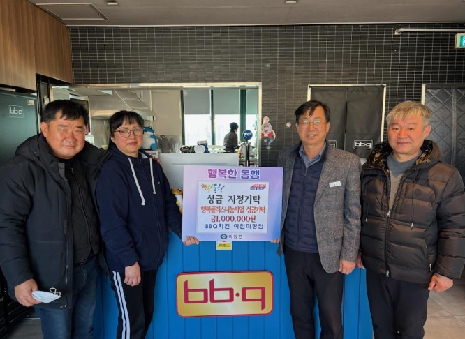 BBQ 이천마장점 원향숙 점주와 성민종합건설(주) 김영근 대표는 “지역사회와 함께 성장해 온 만큼 보답하는 마음으로 기탁에 동참했다”라며 “작은 정성이지만 주민들에게 큰 힘이 되길 바라고 앞으로도 지역사회와 상생하는 사회공헌 활동을 이어가겠다”라고 전했다.