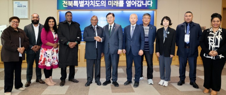 [뉴스노크=김인호 기자] 전북특별자치도는 10월 27일 파푸아뉴기니 국제무역·투자부 리차드 마루(Richard Maru) 장관을 단장으로 한 대표단이 전북도를 공식 방문해, 김관영 도지사와 면담을 갖고 농업, 교육, 국제개발협력 등 다양한 분야의 협력 확대 방안을 논의했다고 밝혔다.