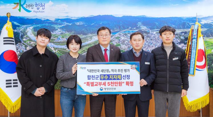 [뉴스노크=김인호 기자] 합천군은 행정안전부가 주관한 ‘대한민국 새단장’ 평가에서 우수 지자체로 선정돼 특별교부세 5천만 원을 확보했다고 6일 밝혔다.