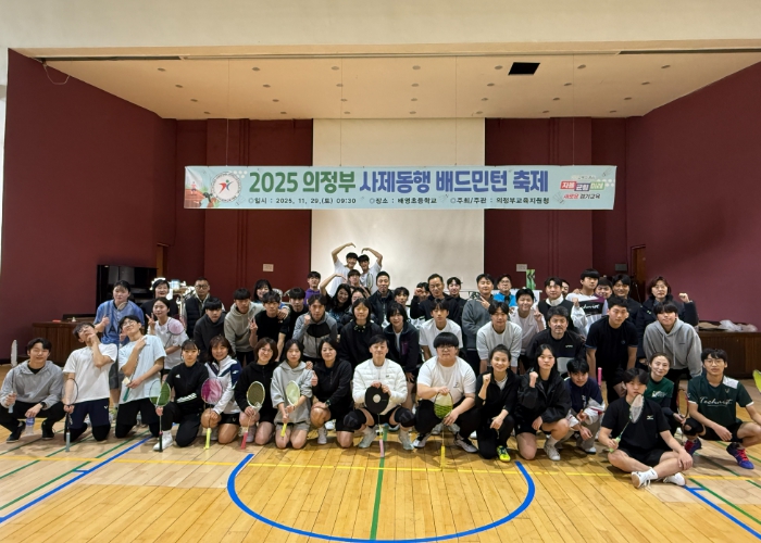[뉴스노크=김인호 기자] 경기도의정부교육지원청은 11월 29일 배영초등학교 체육관에서 관내 중·고등학교 교사와 학생이 함께하는 ‘2025 학교스포츠클럽 사제동행 배드민턴 축제’를 성황리에 운영했다.