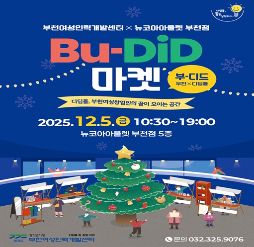 [뉴스노크=김인호 기자] 부천여성인력개발센터는 Bu-DiD〔부-디드, 부천X디딤돌〕마켓을 12월 5일 10시 30분부터 19시까지 뉴코아 부천점 5층에서 개최한다.