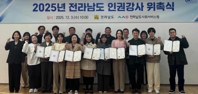 [뉴스노크=김인호 기자] 전라남도는 3일 도민 인권교육을 통해 생활 속 인권 존중문화 확산에 앞장설 신규 인권강사 15명을 위촉했다.