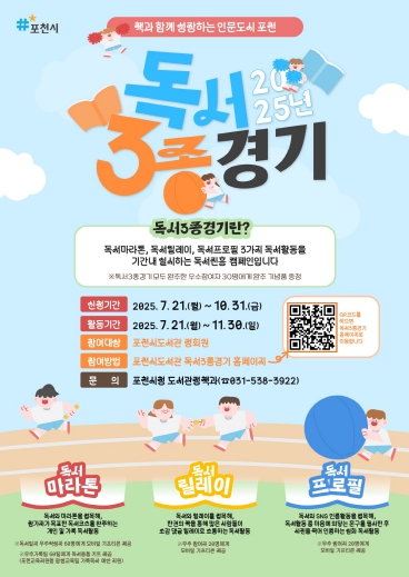[뉴스노크=김인호 기자] 포천시는 책과 함께 성장하는 인문도시 조성을 위해 오는 7월 21일부터 11월 30일까지 ‘2025년 포천시 독서 3종경기’를 운영한다.