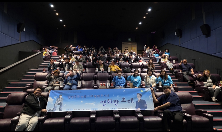 [뉴스노크=김인호 기자] 평택북부장애인복지관은 가수 임영웅 팬클럽 ‘영웅시대 평택 온기’와 함께 10월 23일(목) 14:00부터 17:00까지 CGV평택고덕점에서 평소 영화 관람이 어려운 평택시 장애인 50명을초청하여 함께 영화를 보는 문화 행사 ‘임영웅과 온기의 영화관 초대’ 행사를 진행 했습니다.