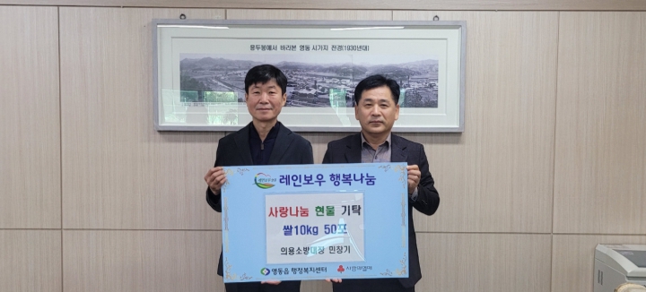 | ▲ 영동읍 의용소방대장 민창기 씨, 영동읍에 쌀 10kg 50포 기탁 |