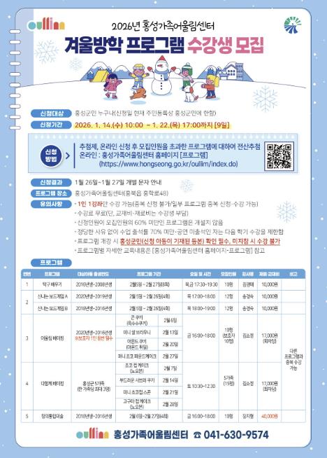 | ▲ 홍성가족어울림센터, 겨울방학 프로그램 수강생 모집 |