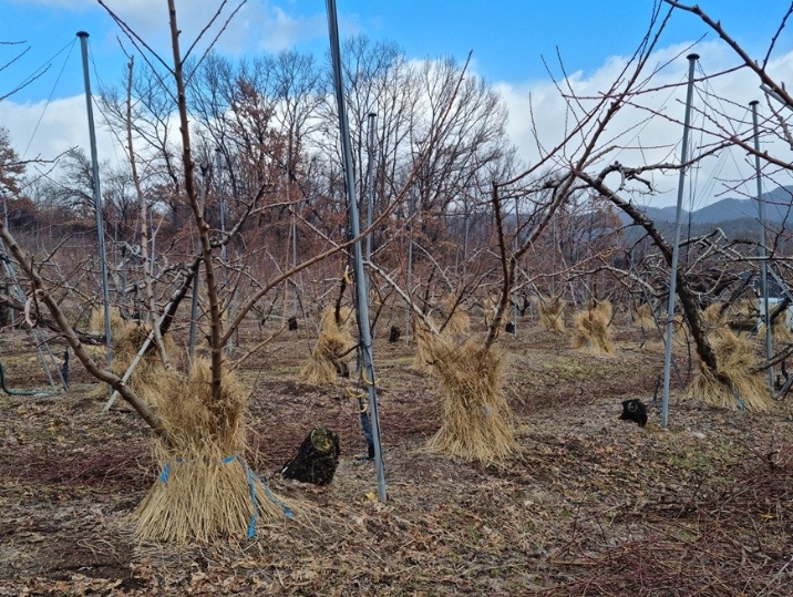 아울러 동해 피해가 우려되는 유목(어린 나무) 식재 과수원, 배수가 불량한 과수원, 지난해 가을 조기 낙엽이 발생한 과수원에 대해서는 이런 방한 조치가 꼭 필요하다고 안내했다.