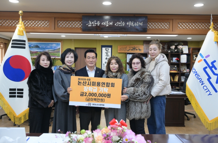 논산시미용연합회에서도 27일 2백만 원의 장학금을 기탁하며 지역 인재 양성에 힘을 보탰다. 논산시미용연합회는 평소 재능기부를 통한 미용 봉사활동을 꾸준히 펼치며 지역사회에 온기를 전하고 있다.