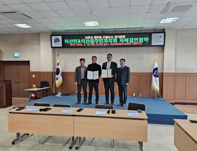 박찬만 덕산면장은 “이번 협약은 행정이 아닌 주민이 주도하는 교류라는 점에서 더 의미가 크다”며 “앞으로도 문화·복지·지역 활성화 분야에서 실질적인 협력사업을 지속 추진해 나가겠다”고 말했다.