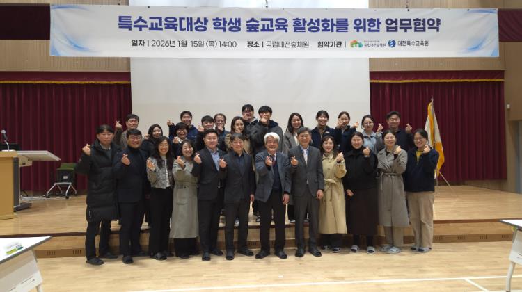 이번 협약을 계기로 국립대전숲체원은 특수교육대상학생과 교사, 가족을 위한 숲 체험 기회를 더욱 확대하고 지속적으로 제공할 예정이다.