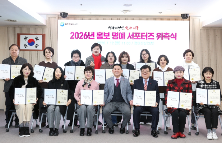 [뉴스노크=김인호 기자] 대전 서구는 12일 구청 장태산실에서 ‘2026년 대전 서구 홍보 명예 서포터즈 위촉식’을 개최했다.