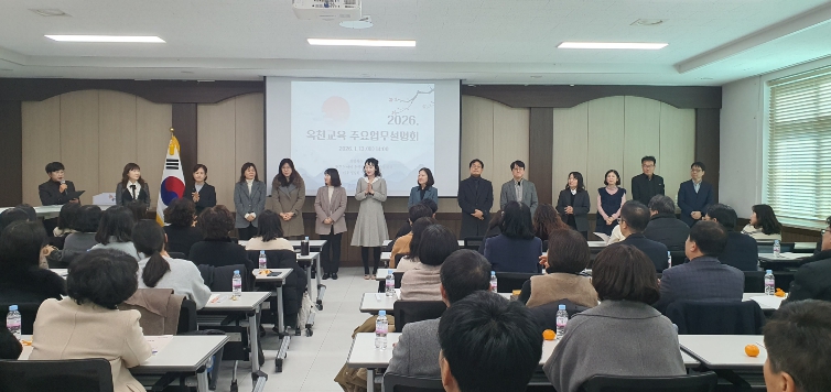 행사는 2025년의 주요성과 공유를 시작으로 2026년 옥천교육 교육정책의 기본방향과 추진내용, 중점사업, 팀별 업무추진 관련 행정사항 안내, 질의응답 순으로 진행됐다.