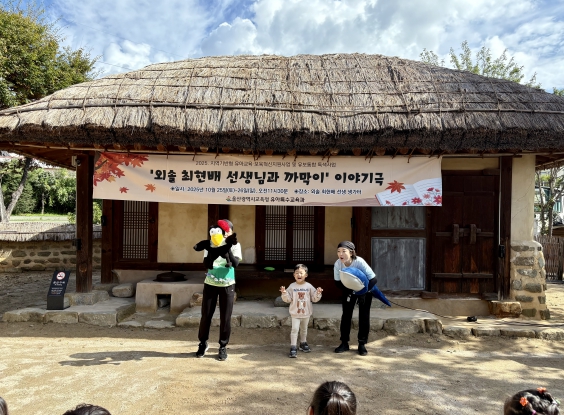 [뉴스노크=김인호 기자] 울산광역시교육청은 25~26일 오전 11시 30분부터 12시까지 외솔 최현배 선생 생가터에서 어린이와 가족을 대상으로 이야기 극 ‘외솔 최현배 선생님과 까막이’ 공연을 열었다.