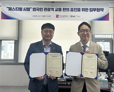 [뉴스노크=김인호 기자] 부산시는 '페스티벌 시월' 기간 부산을 방문하는 외국인 관광객의 교통 편의성을 높이기 위해, 어제(11일) 글로벌 택시 호출 플랫폼 '우버 택시(Uber Taxi)'와 업무협약(MOU)을 체결했다고 밝혔다.