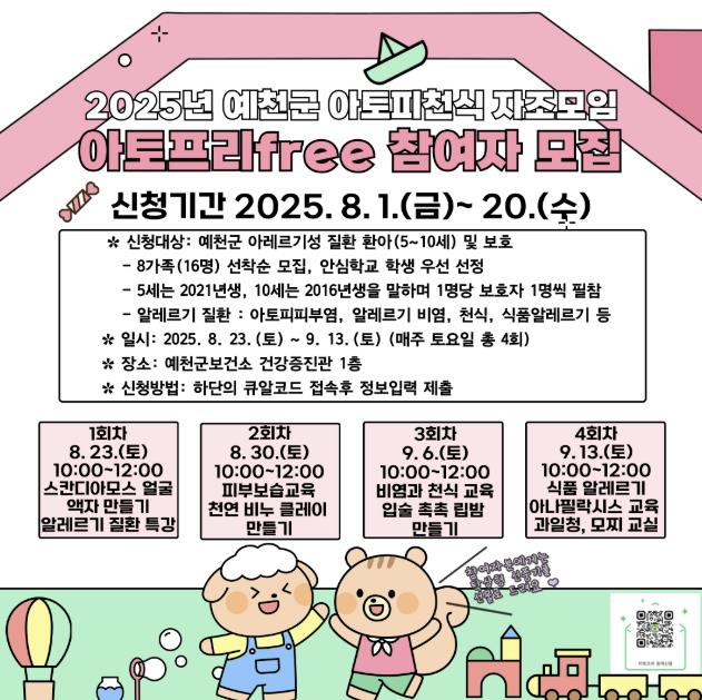 ▲ 예천군, 아토피‧천식 자조모임 ‘아토프리free’ 참여자 모집 |