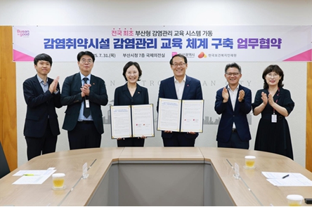 [뉴스노크=김인호 기자] 부산시는 어제(7월 31일) 한국보건복지인재원과 '감염취약시설 감염관리 교육체계 구축'을 위한 업무협약(MOU)을 체결하고, 전국 최초로 지역맞춤형 '부산형 감염관리 교육 시스템'을 본격 개발·추진한다고 밝혔다.