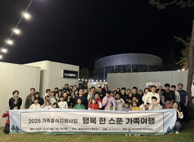[뉴스노크=김인호 기자] 아산시장애인가족지원센터는 23일부터 1박 2일간 파라다이스 스파 도고에서 관내 장애인 가족을 대상으로 ‘2025년 행복 한 스푼 가족여행’을 진행했다고 밝혔다.