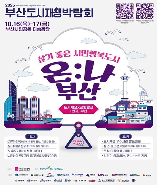 [뉴스노크=김인호 기자] 부산광역시는 오는 10월 16일부터 17일까지 이틀간 부산시민공원 다솜광장 일원에서 '2025년 부산도시재생박람회'를 개최한다고 밝혔다.