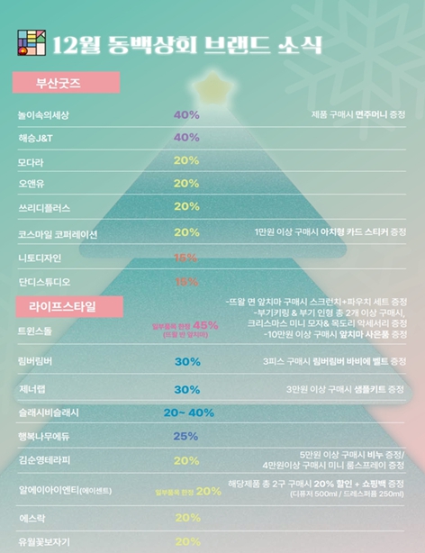 [뉴스노크=김인호 기자] 부산시와 부산경제진흥원은 부산 우수 제품 쇼핑 숍 '동백상회'에서 12월 31일까지 송년 감사 특별 할인 행사를 개최한다고 밝혔다.